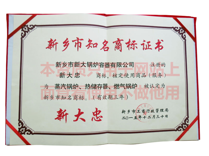 新鄉市知名商標證書