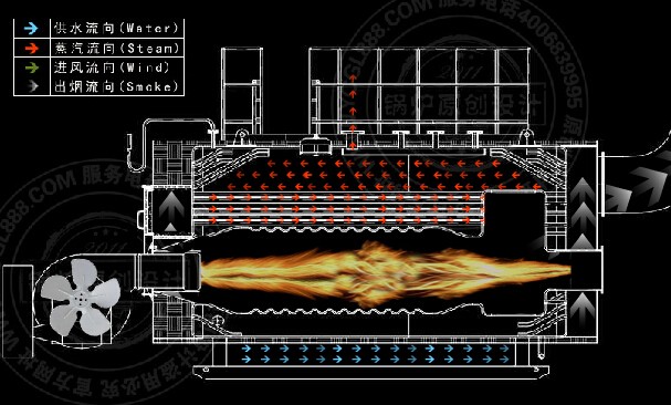 1、鍋爐采用三回程臥式濕背式結構,扳邊對接焊縫,提高了鍋爐可靠性。